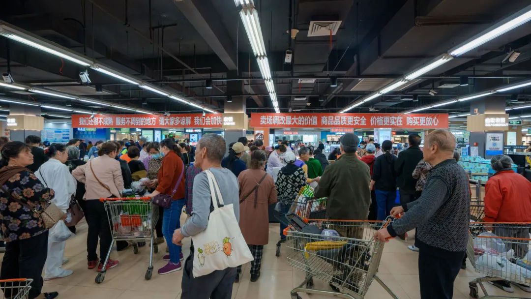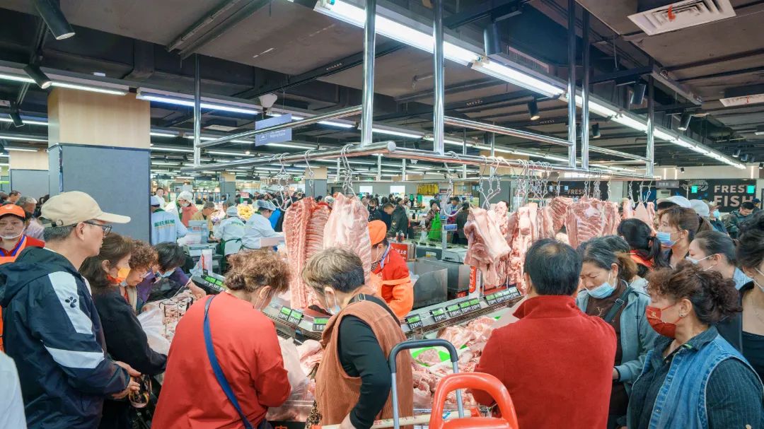 开业首日,生鲜区的变革尤为引人注目。蔬果区域春鲜时令与地域特色并重,系列春菜批次上新,让“您”直观感受春天的第一口鲜活;智利西梅、进口红提、热带水果、烤榴莲等,备受市民青睐。鲜食类别高鲜度商品当日出清,确保每日“新”“鲜”同步,“烟火气”满满。黄油年糕、黑金芝士马里奥面包、海盐优格面包、大福糕等,成为门店爆款。肉食、水产、干货类别强化地标、季节类商品导入,乳山生蚝、茶鱼、牧北牛腩、鲜活基围虾、汉江黑猪通排等,吸引顾客围观选购。
